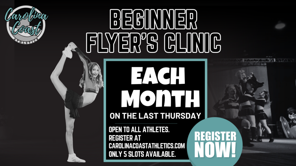 Spend your Spring Break staying active at Carolina Coast Athletics! Join us for a week of tumbling and open floor space where athletes can work on skills, get extra reps, and stay moving while school is out.