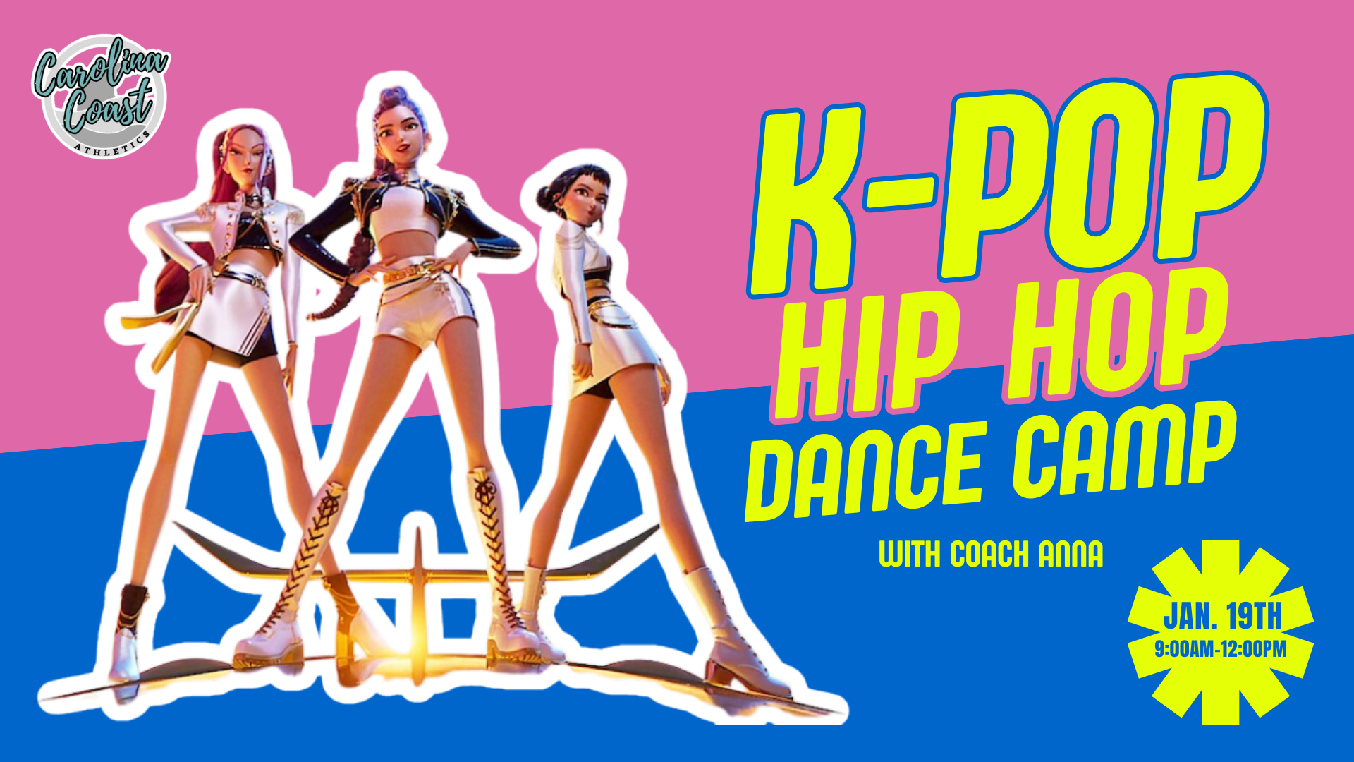 Spend your Martin Luther King Jr. Day off from school dancing, creating, and performing at Carolina Coast Athletics! This high-energy camp is perfect for athletes who love K-Pop and hip hop styles and want a fun, engaging way to enjoy their day off.