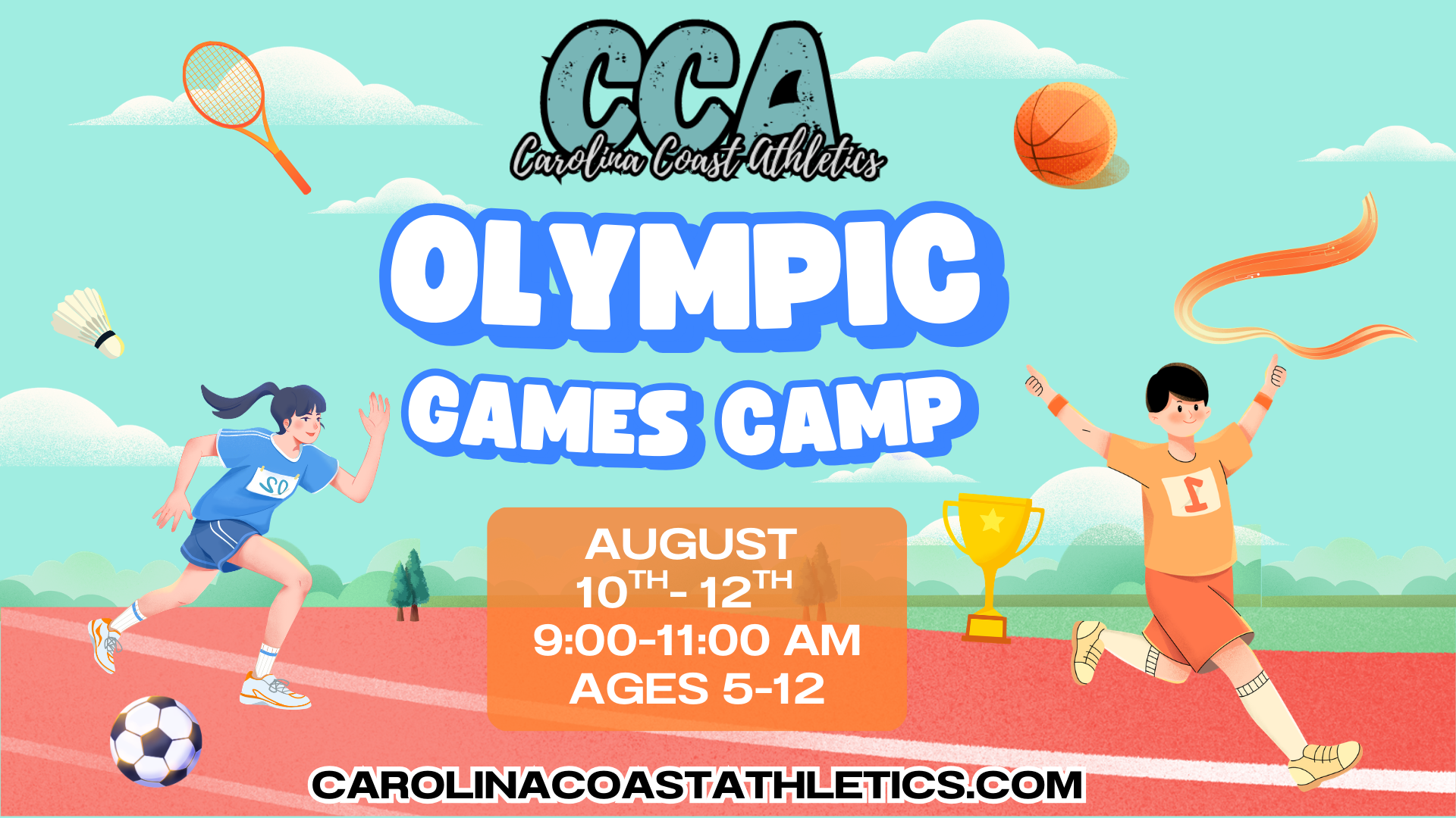 Get ready to compete, move, and have fun at CCA’s Olympic Games Camp! Campers will experience the excitement of friendly competition while participating in a variety of sports-inspired challenges and team events. Each day includes crafts, snacks, and action-packed activities where campers will rotate through Olympic-style games, obstacle courses, and skill stations that build agility,...